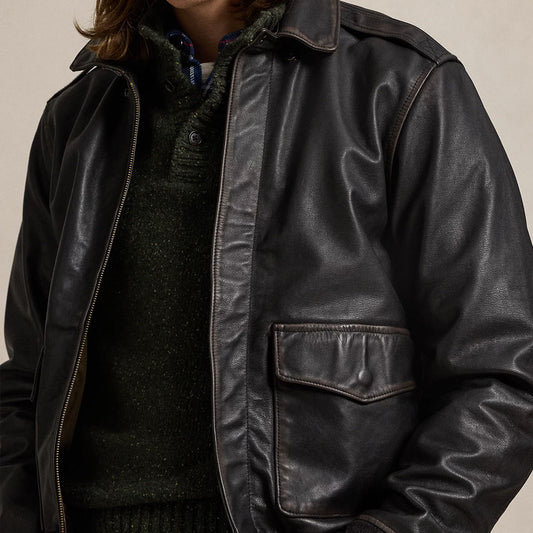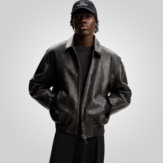 A2 Black Distressed Leather Bomber JacketRegular price From Rs.72,000.00 PKRRegular priceUnit price / perRs.77,800.00 PKRSale price From Rs.72,000.00 PKRSale