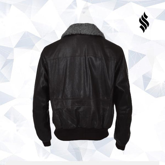 Genuine Leather Aviator Fur Collar Black Leather Jacket