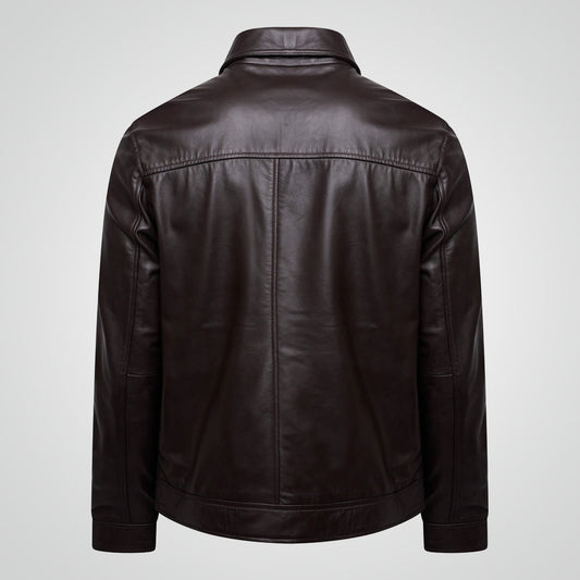 Men's Genuine Goatskin Plain Brown Trucker Leather Jacket