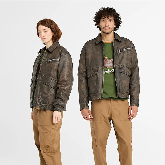 Unisex Distressed Brown Leather Jacket