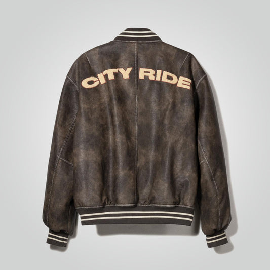 Men's Vintage Leather Varsity Bomber Jacket