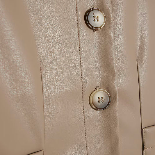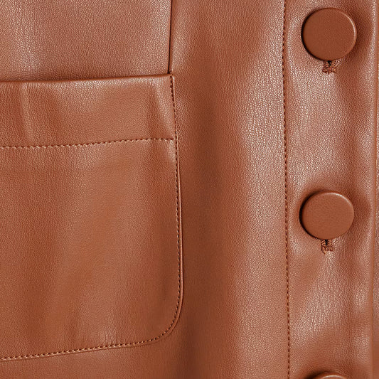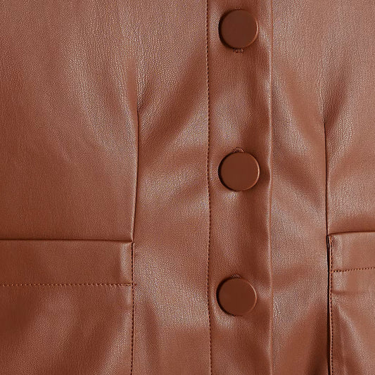 Brown Leather Button Closure Shirt For Women
