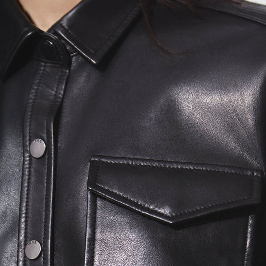Elevate your wardrobe with Leather Wear’s exclusive collection of women’s leather shirts—where sophistication meets edge. Crafted from premium lambskin, supple faux leather, and buttery-soft cowhide, our leather shirts blend timeless elegance with contemporary fashion. Whether you’re styling a sleek leather shirt dress for evening glam or a tailored button-up leather shirt for polished everyday wear, each piece is designed for versatility and lasting quality.
