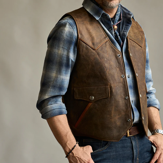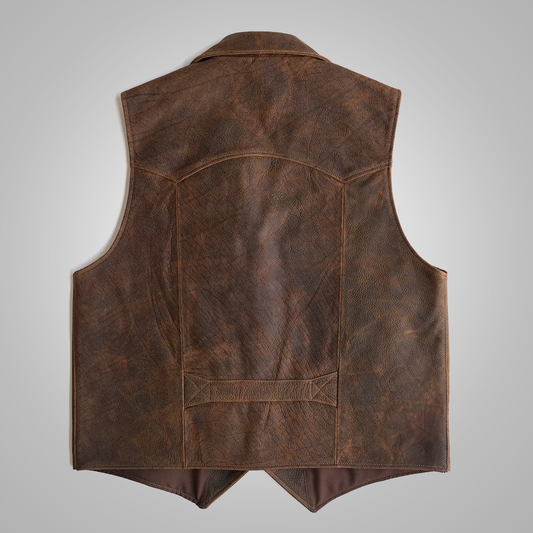 Men's Brown Western Cowboy Waistcoat Buffalo Leather Vest