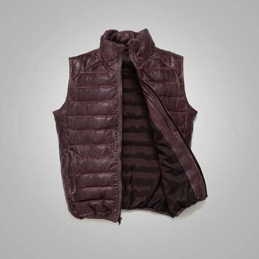 Mens Dark Brown Bubble Waistcoat Leather Bubble Jacket Vest