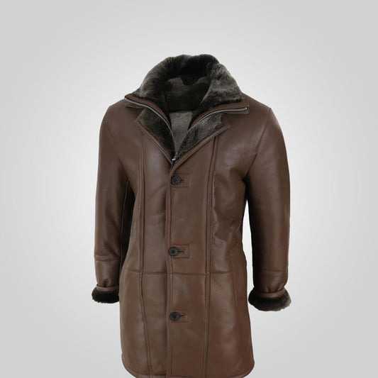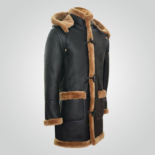 Men’s Brown Duffle Jacket Sheepskin Long Coat