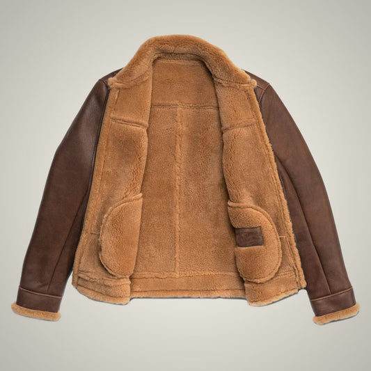 Men's Brown B3 WW2 Bomber Sheepskin Shearling Leather Jacket