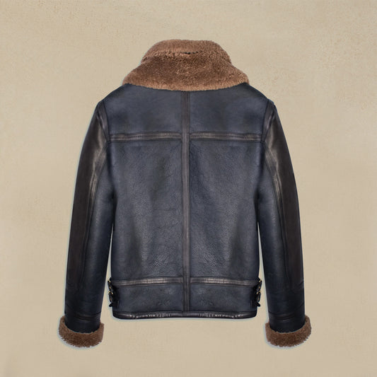 Double Collar Sheepskin Leather Aviator B3 Bomber Jacket