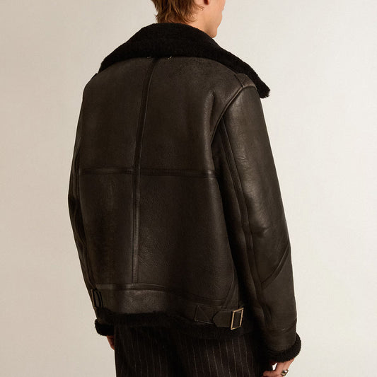 Men's Black Double Collar B3 Sheepskin Shearling Jacket