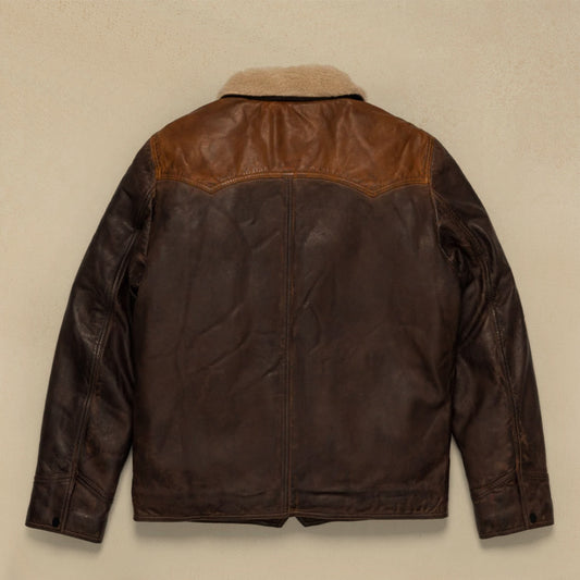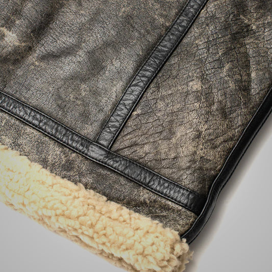 Distressed Sheepskin Leather Sherpa Jacket For Men