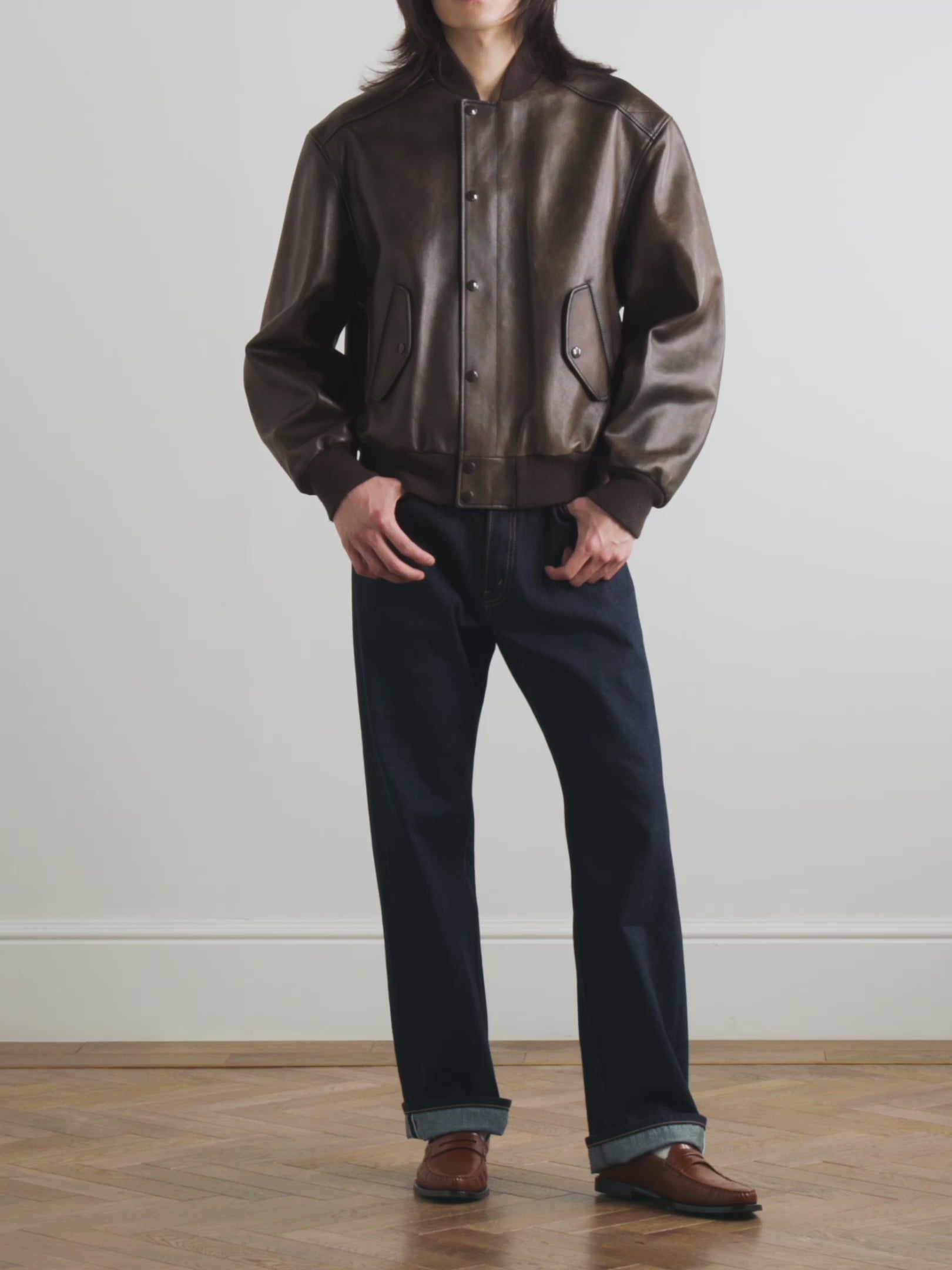 True to its bomber heritage, this jacket is designed with ribbed-knit cuffs and waistband, offering a tailored yet comfortable fit that keeps out wind and traps warmth. The ribbing also enhances the silhouette, giving it a structured yet flexible form. Two deep, functional side pockets provide ample storage for essentials like your phone or wallet, while maintaining the sleek, minimal profile that defines modern leather wear. Whether you're commuting, traveling, or simply heading out for the evening, these details elevate the jacket from mere fashion to high-performance outerwear. If you're seeking a men’s ribbed Leather bomber jacket that delivers on both form and function, this one fits the bill.
